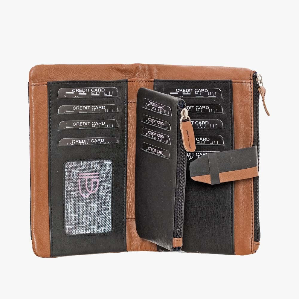 Το πορτοφόλι διαθέτει θηκή για ταυτότητα και συνολικά 13 θήκες για κάρτες, προσφέροντας άφθονο χώρο για την οργάνωση των προσωπικών σας αντικειμένων. Με διαστάσεις 16.5 cm μήκος και 10 cm ύψος, είναι ευρύχωρο αλλά και πρακτικό για τις τσάντες σας.