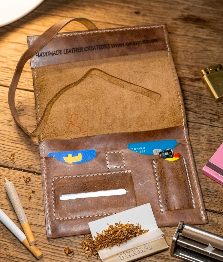 Χειροποίητη Δερμάτινη θήκη καπνού καφέ
