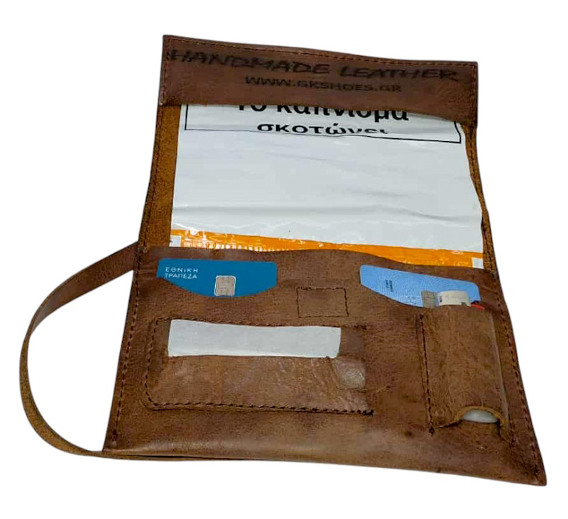 Χειροποίητη Δερμάτινη θήκη καπνού καφέ από δέρμα μοσχάρι υψηλής ποιότητας και αντοχής, με θήκη για χαρτάκια και αναπτήρα καί υποδοχή για 2 εώς 6 κάρτες. Η αποτύπωση της εικόνας έχει γίνει με Laser πράγμα που την καθιστά αναλλοίωτη και ανεξίτηλη στο χρόνο