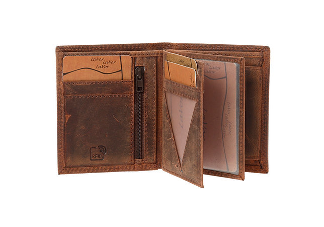 LavorΔερμάτινο Ανδρικό Πορτοφόλι με RFID Καφέ μικρό μέγεθος 2106